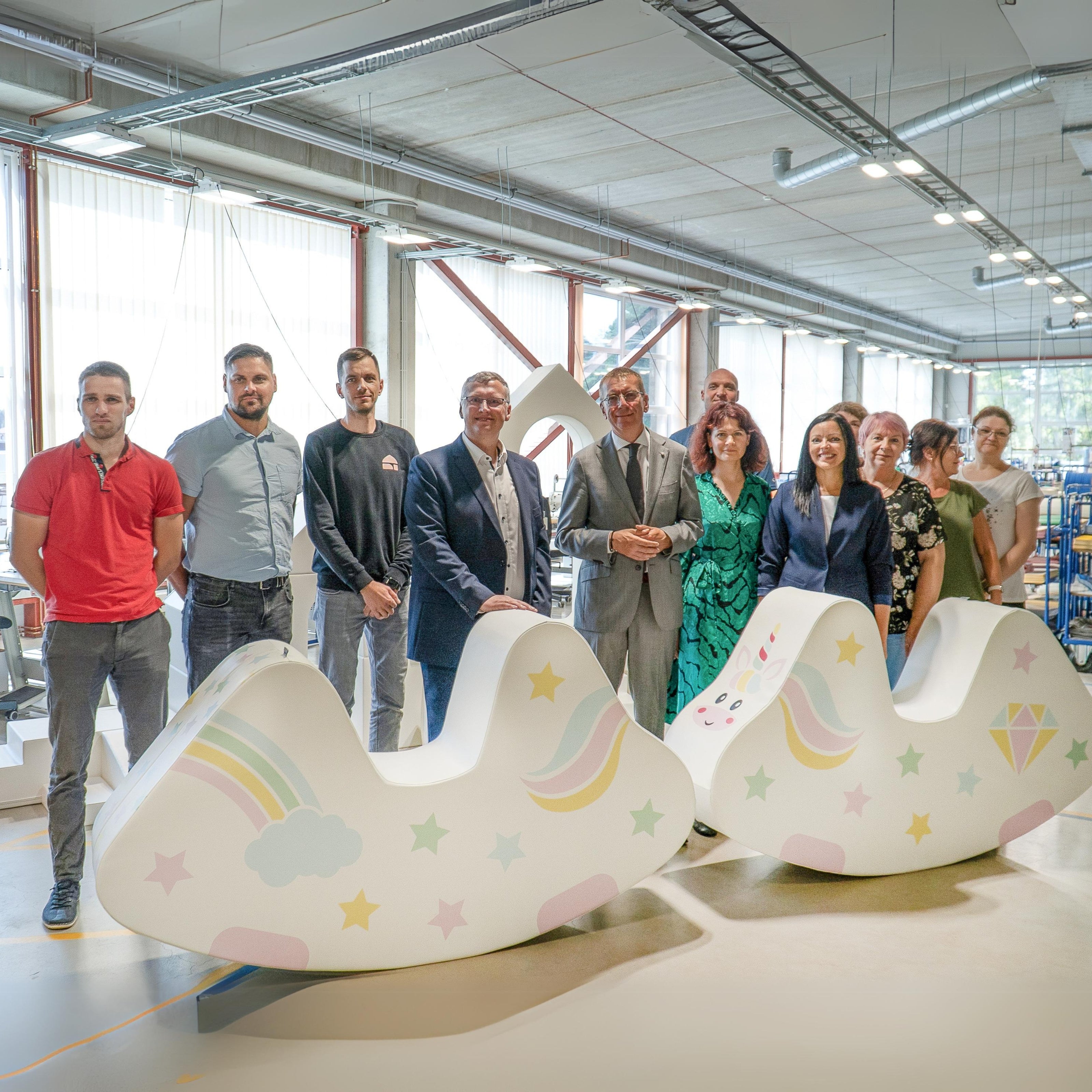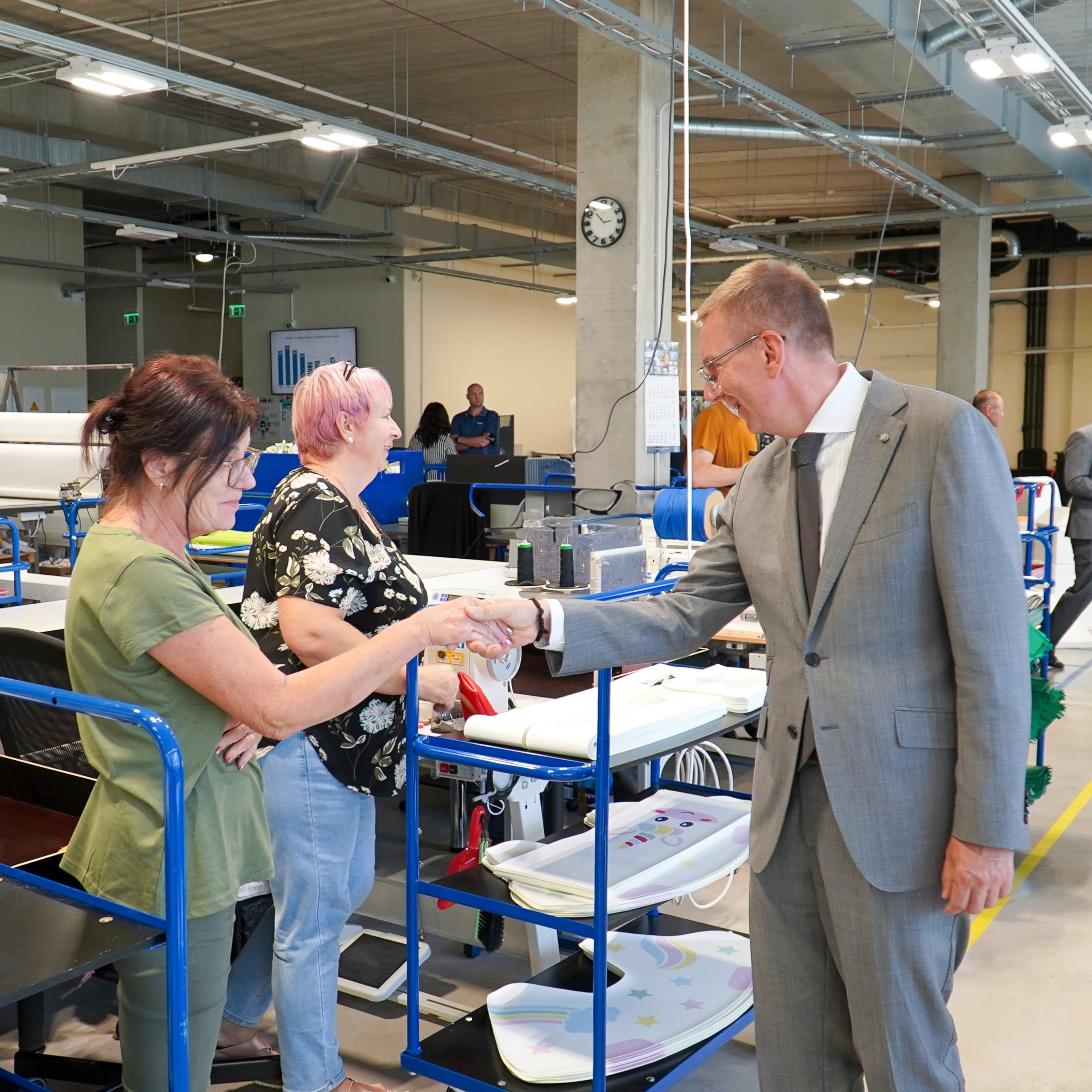 During his visit, President E. Rinkevičs took the time to engage with our talented seamstresses, who are the heart and soul of our production process. Each day, these skilled artisans meticulously craft and inspect every piece, ensuring that each piece meets the highest standards of quality before it becomes part of a finished set. From there, these lovingly made products are carefully packaged and shipped, destined to bring joy to children around the world.