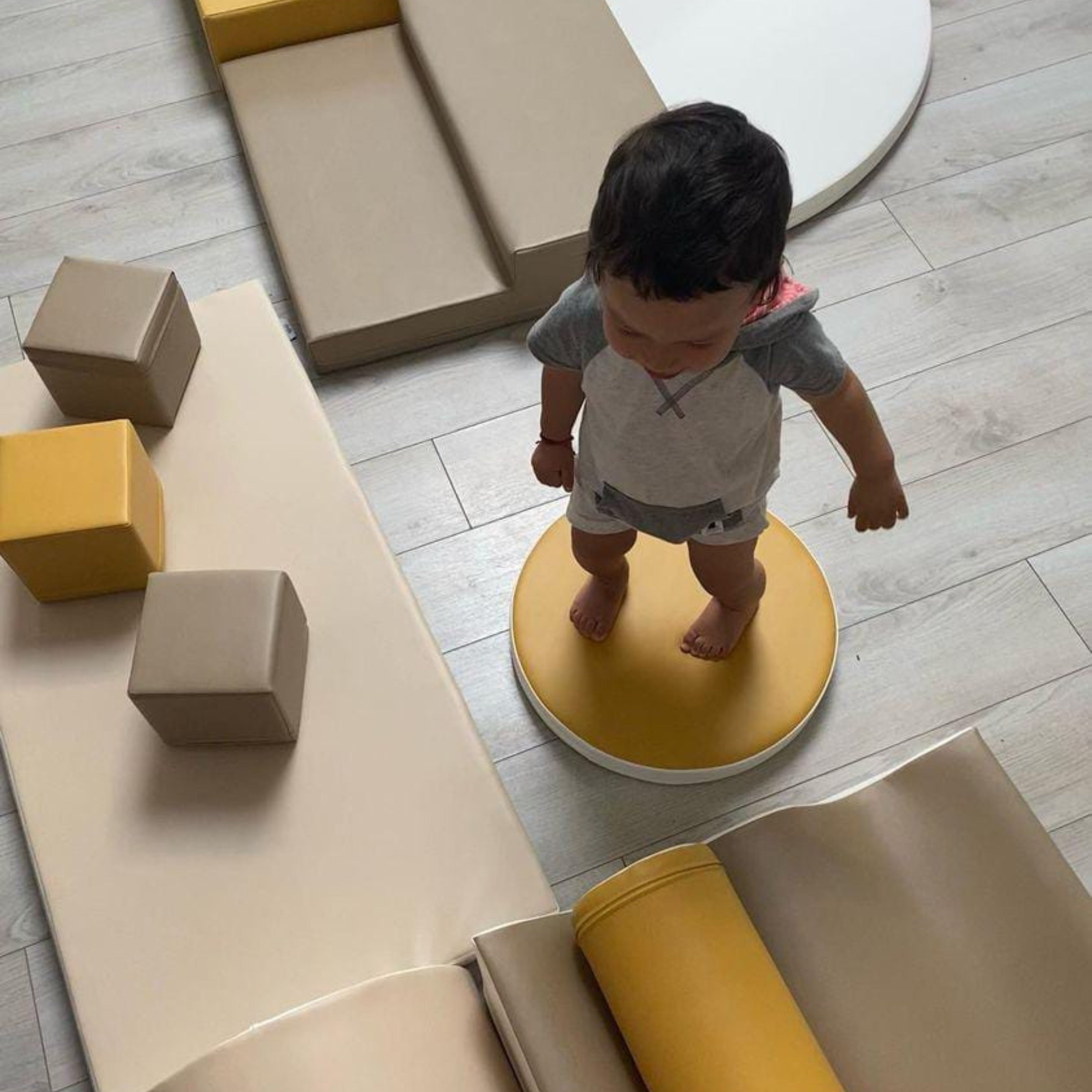 My 9m old baby loves to play on it. He was afraid at first but now goes up and down by himself. He's loving it even more because they are so soft!
